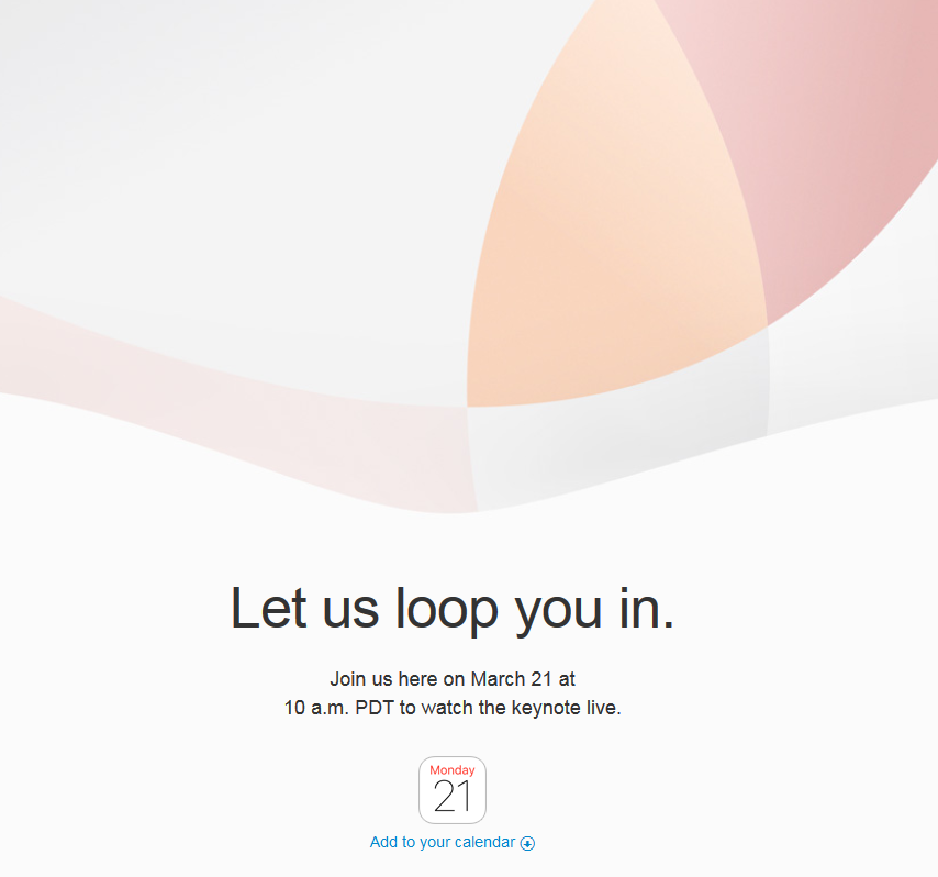 發(fā)布日期:2016-03-12 關(guān)鍵詞:新iphone或發(fā)布!蘋果發(fā)布會(huì)時(shí)間確定:3月22日凌晨 已有 5859 人瀏覽